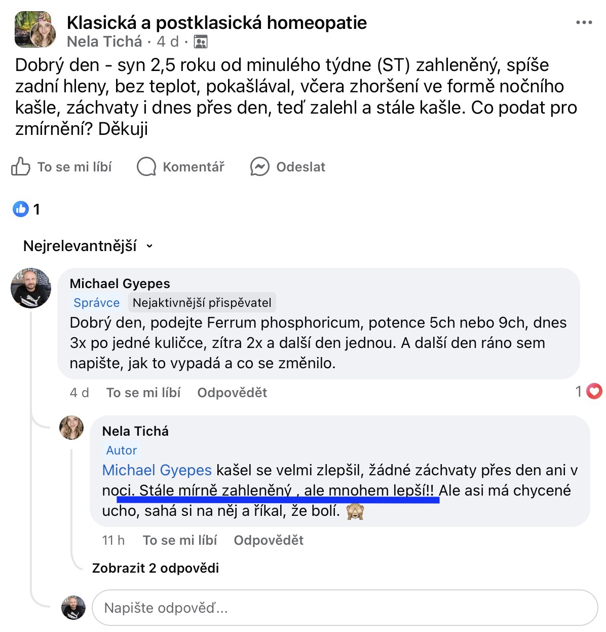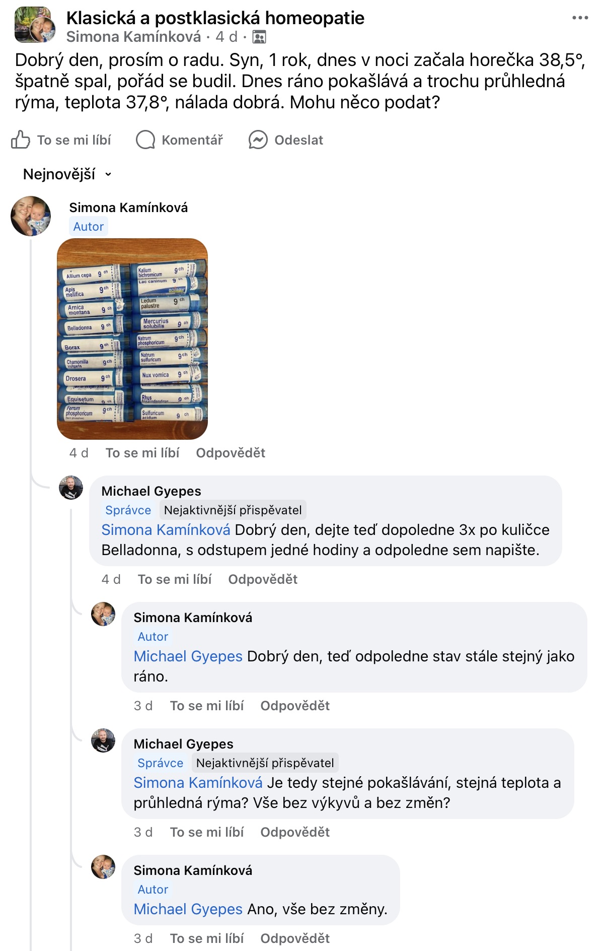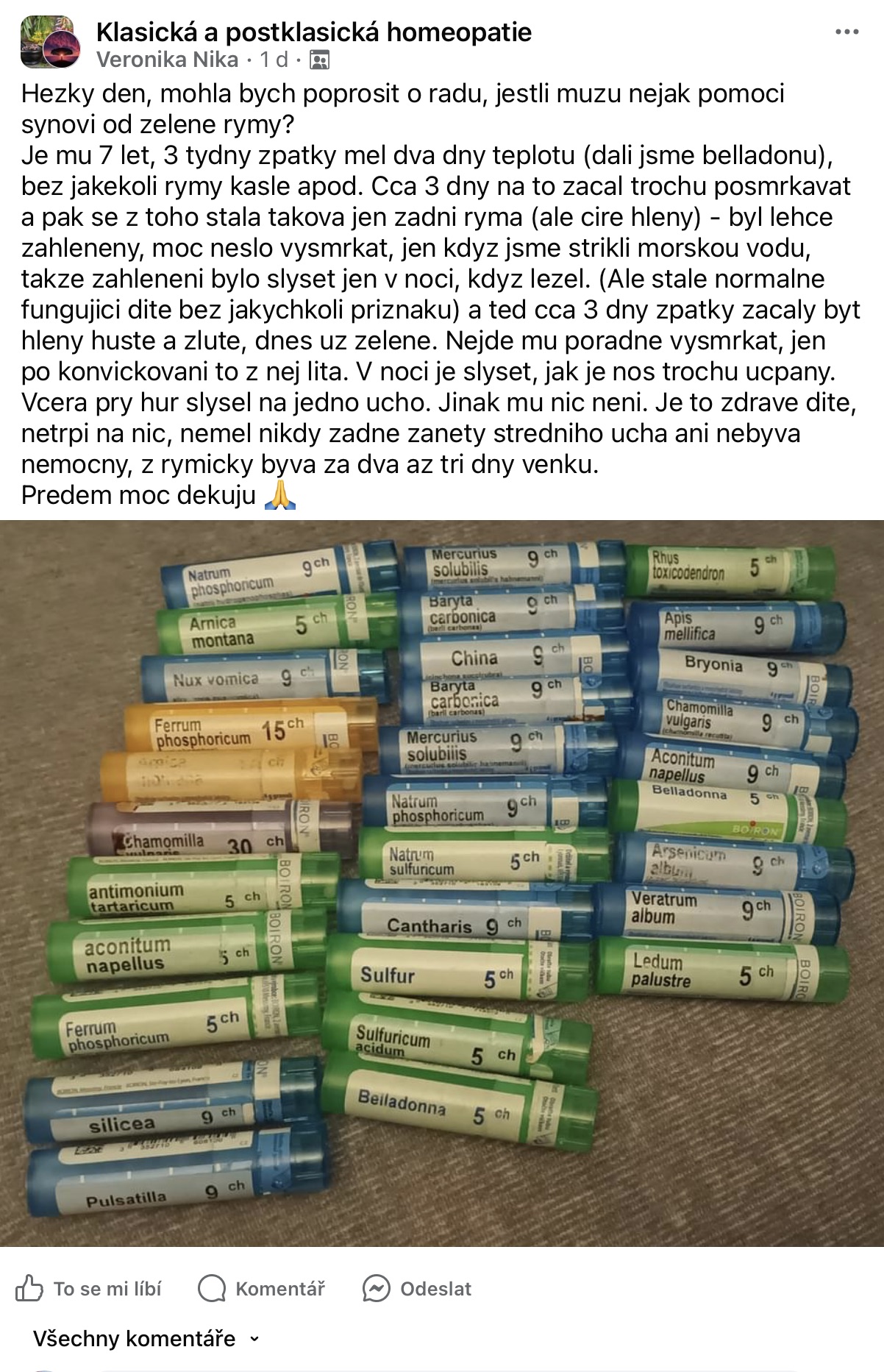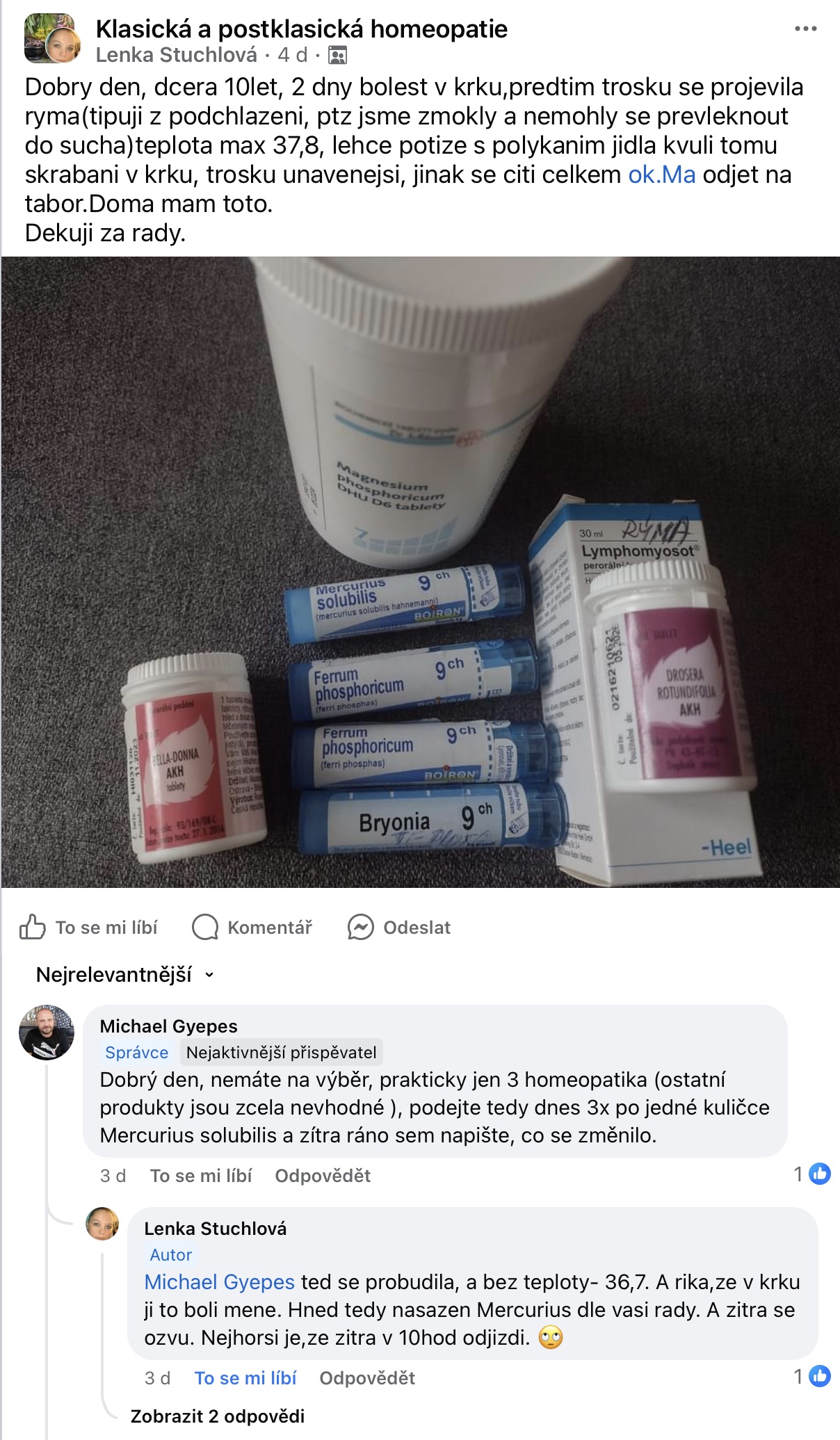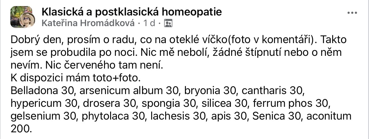 Recenze na Facebooku ve skupině Klasická a postklasická homeopatie.