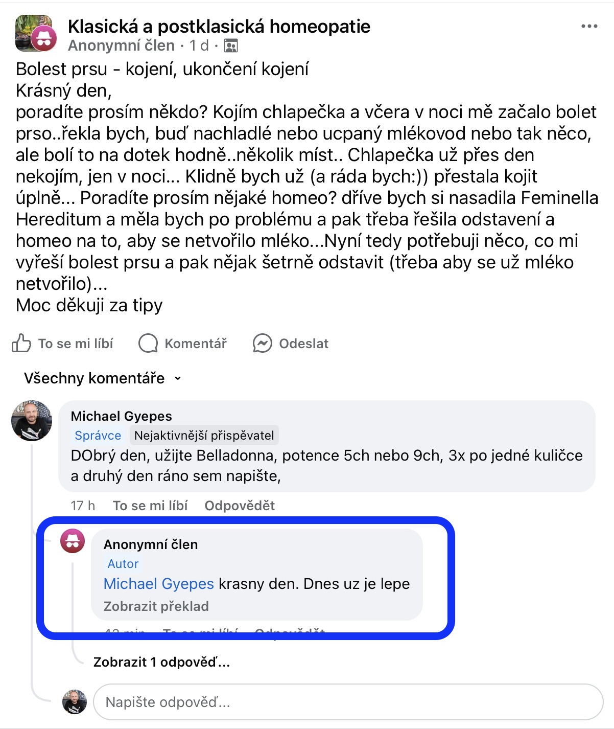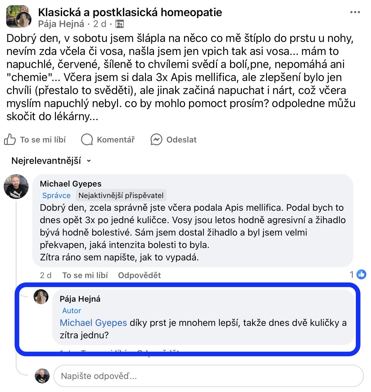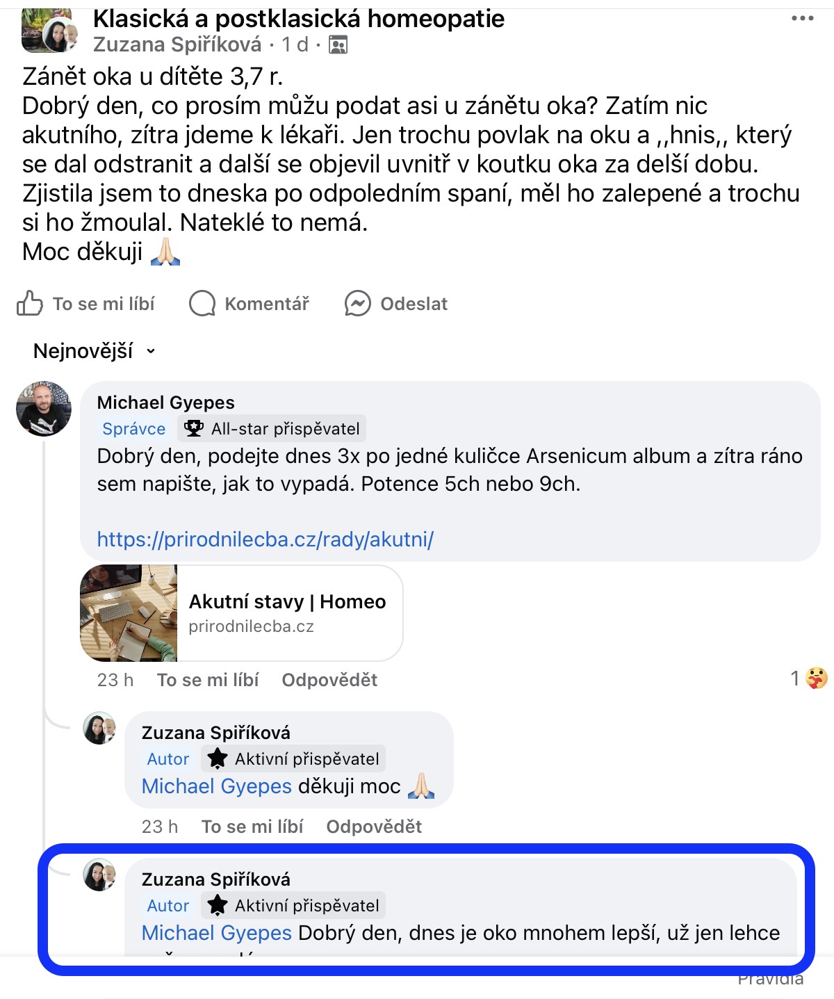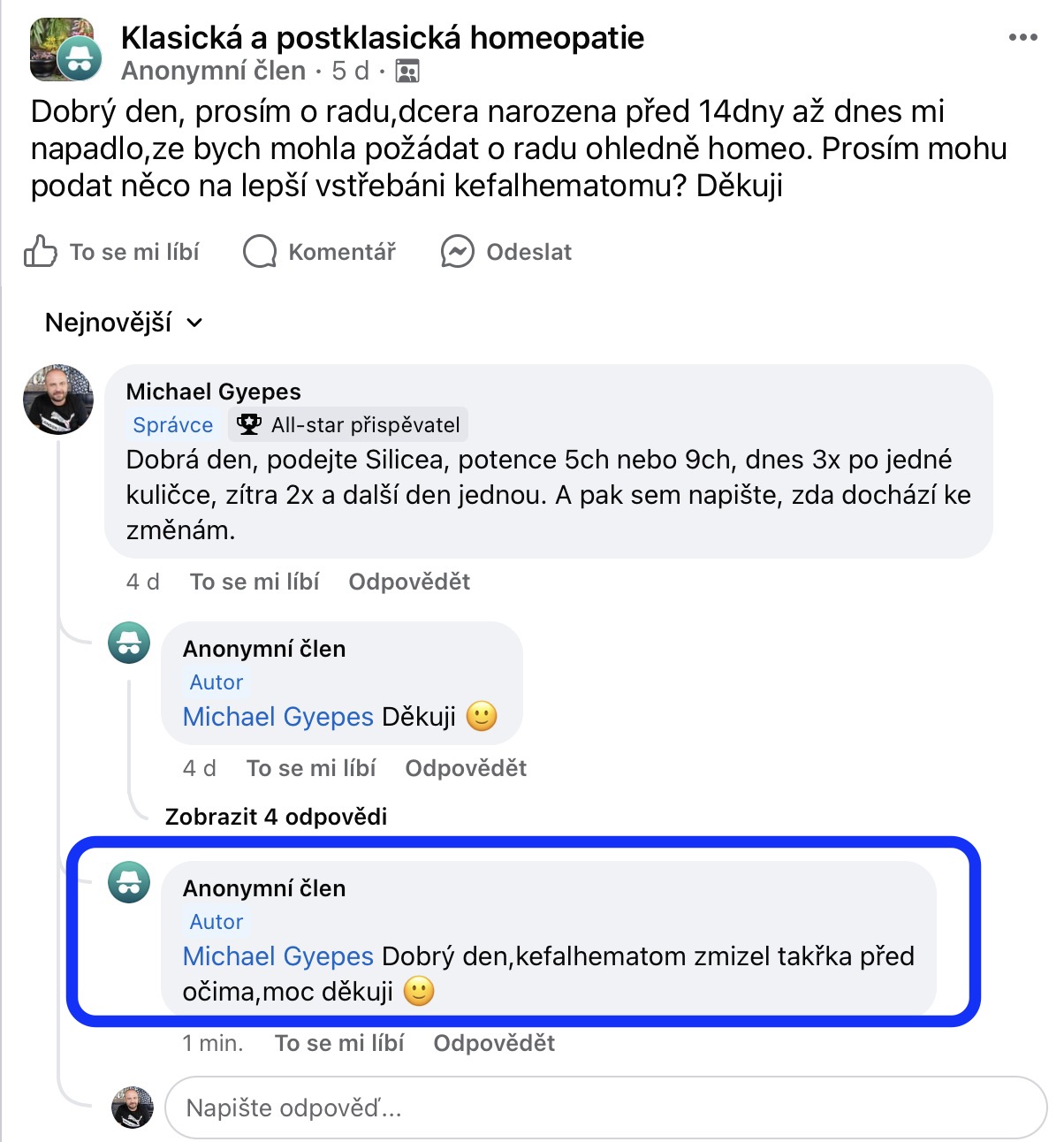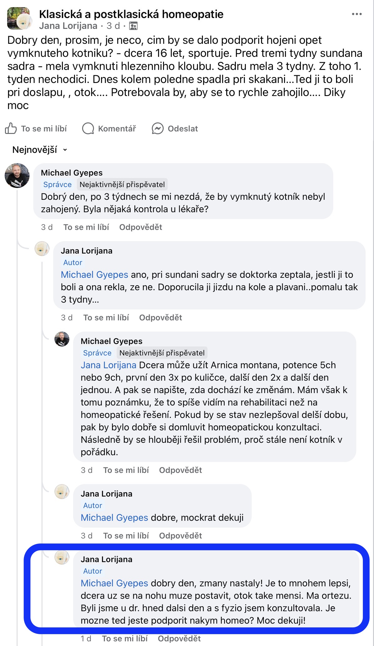Recenze na Facebooku ve skupině Klasická a postklasická homeopatie.