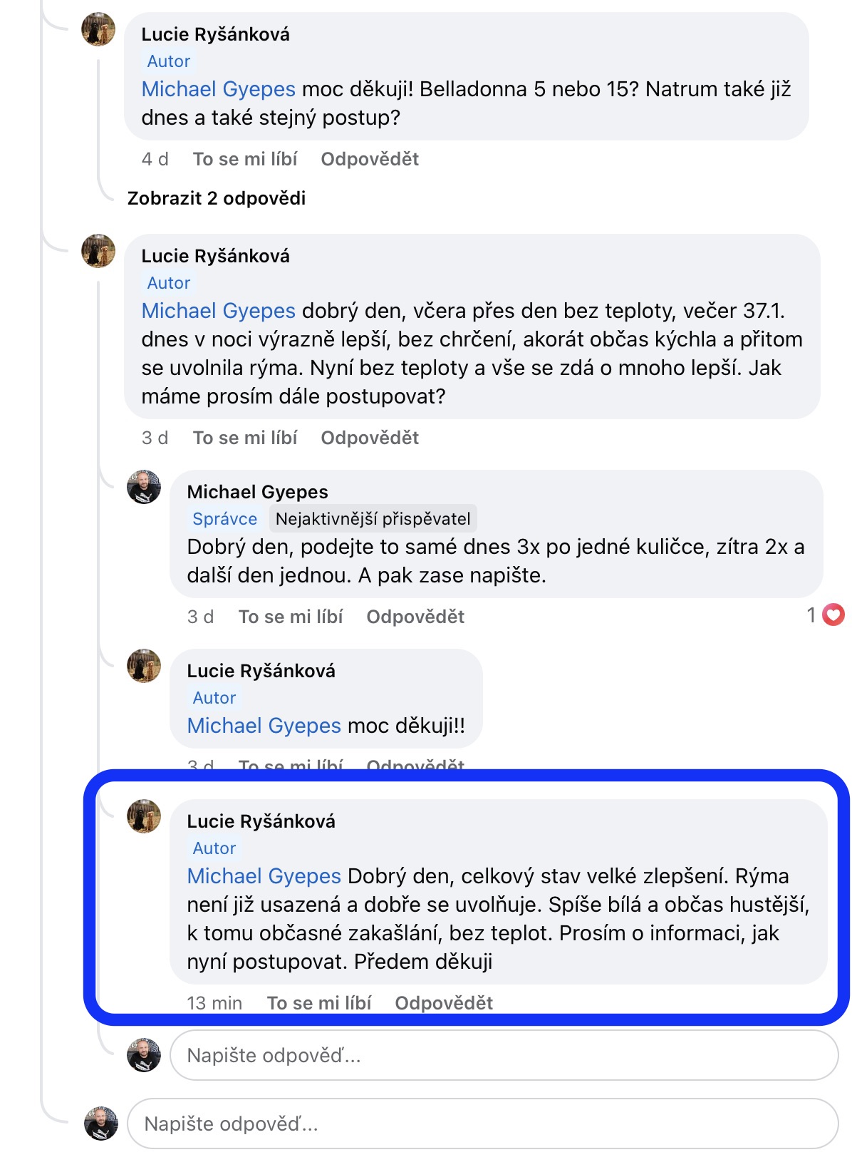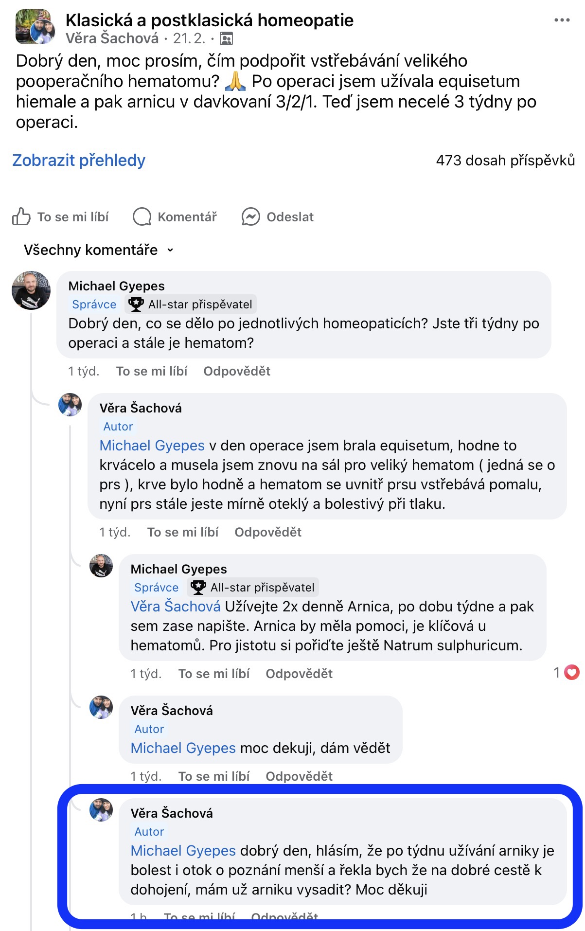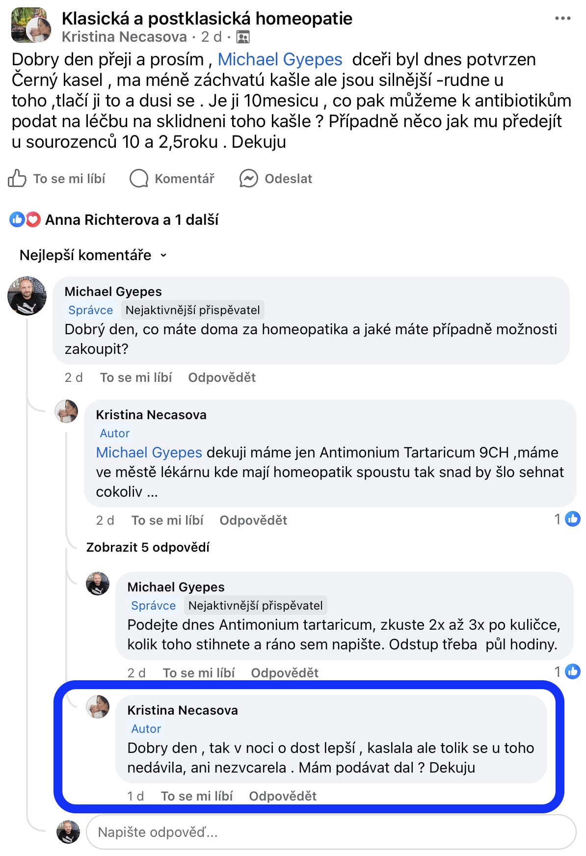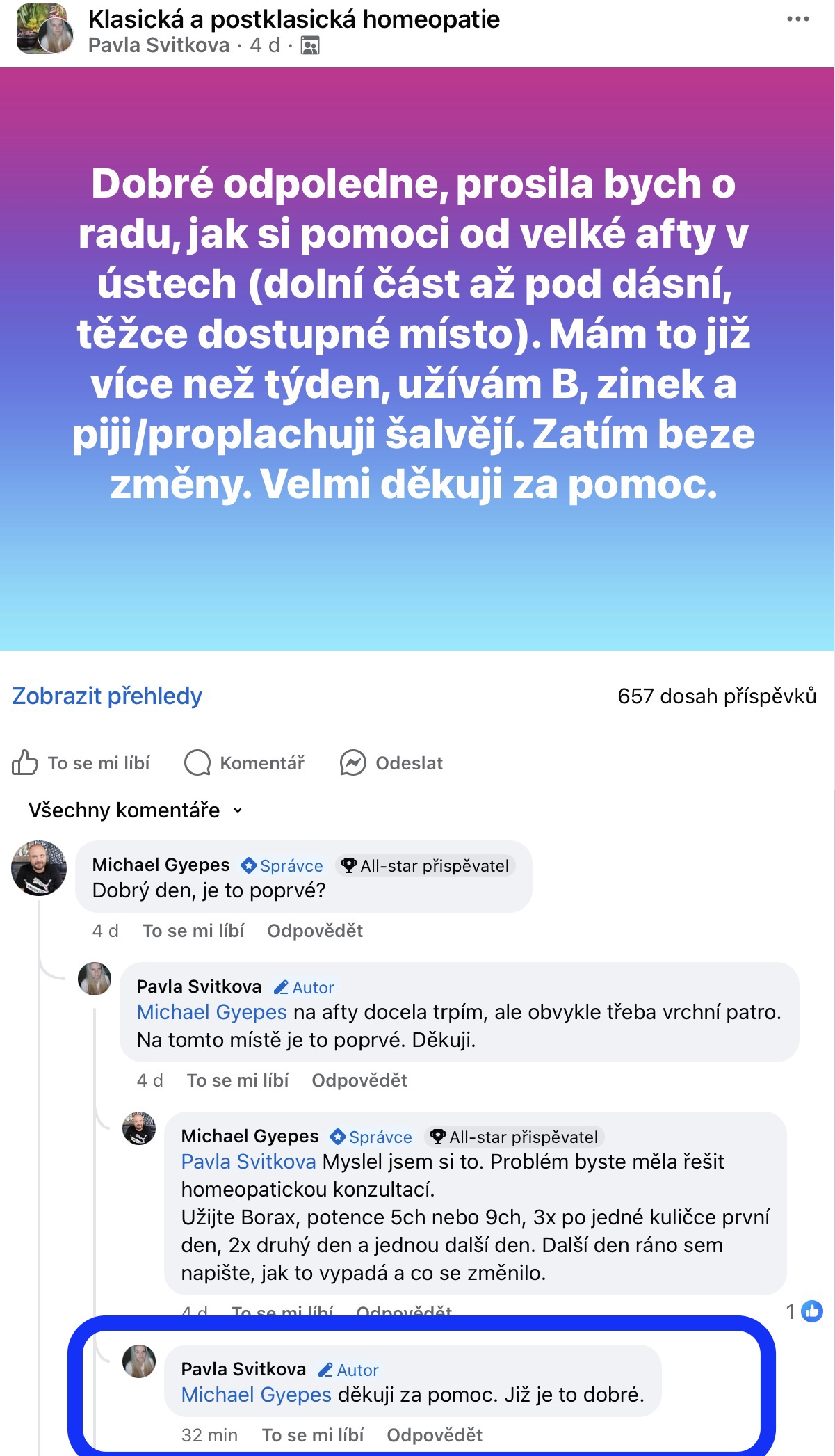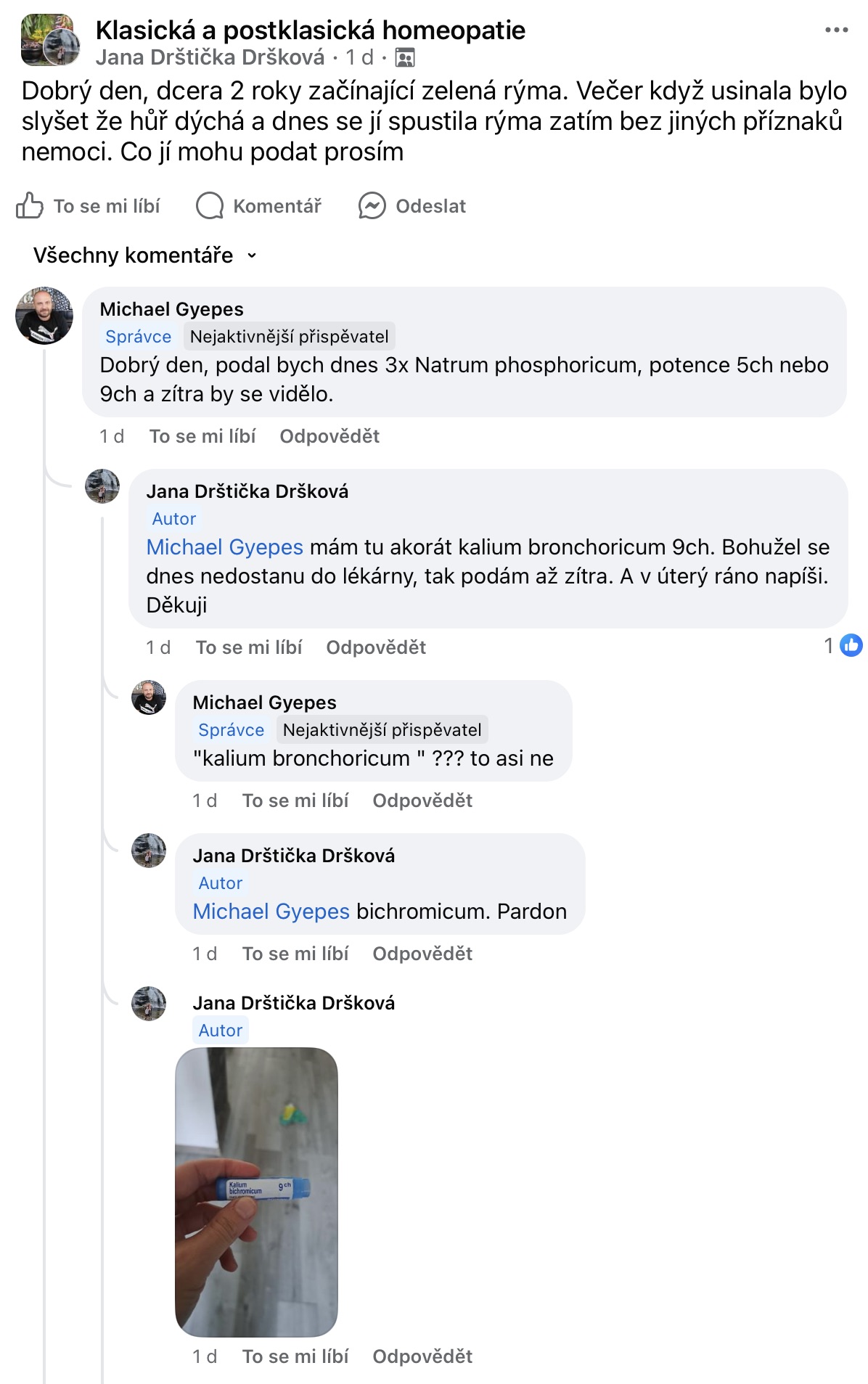 Recenze na Facebooku ve skupině Klasická a postklasická homeopatie.